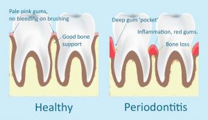 Periodontitis is advanced gum disease. Certain plaque bacteria trigger inflammation, leading to destruction of the bone supporting your teeth.