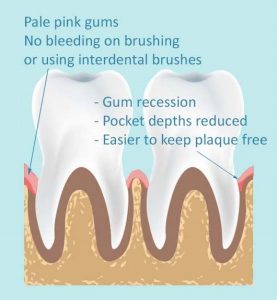 We hope to decrease the depth of the pockets so, going forwards, you can maintain the gum pocket at home. It is much easier for you to keep a 3mm pocket plaque free, than a 6mm!